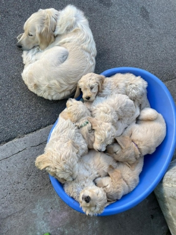 Diamond (Mayla’s 3 jährige Tochter) hat 8 wunderen Welpen das Leben geschenkt. Vater Berry ist ein 3 jähriger Goldendoodle. Es war Diamond’s 1. Wurf. Mit viel Liebe und Hingabe hat Diamonds Familie die Welpen aufgezogen. Ob und wann es wieder einen Wurf geben wird, steht noch in den Sternen.